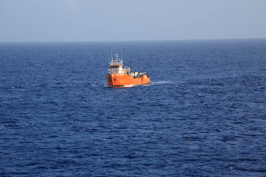 カリブ海の島々を望みながらセントジョンズを目指して終日航海。カリブ海の島々を望みながらセントジョンズを目指して終日航海。カリブ海の漁船