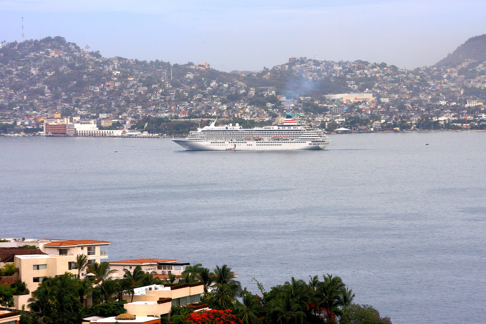 6月18日(金曜日)アカプルコ観光。心配していた天候は、低気圧が消滅しアカプルコ入港が可能となった、しかしウネリが高く岸壁への接岸ができず、飛鳥Ⅱは沖合に投錨、テンダーボートでの上陸となった、飛鳥Ⅱでテンダーボートでの入港は初めての体験でした。午前中ツアーで観光に、最初に戦国時代末期、伊達政宗の命でスペインまで旅をした悲劇の侍「支倉常長」の像を見学、昨日移転が完了して工事中でした。次に、ミラドール展望台へ、アカプルコ湾に立ち並ぶホテル群と砂浜の海岸線、そして湾内に停泊する飛鳥Ⅱが一望できました、曇の天気で青空がなく残念でした。最後に、命知らずの若者が断崖絶壁から海に飛び込む「死のダイビングショー」を見学4人の若者が、55mの高さから荒海に飛び込みました。感動のアカプルコ名物ショーでした。午後は、F氏ご夫妻とタクシーでアカプルコの中心街へ、私は、別行動で海岸へ出て写真撮影、波は少し高かったが、素晴らしい砂浜が続き大勢の海水浴客で、 シャッターチャンスが一杯でした。夕方5時に11デッキ「プールサイド」でボンボヤージュが行われ、シャンパン片手に、アカプルコ港を出港しました。