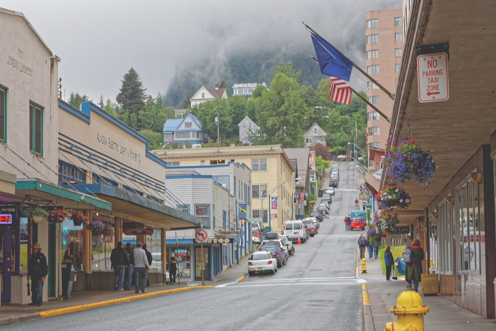 7月1日(木曜日)ジュノー入出港、メンデンホール氷河遠望観光。坂道が多いことからリトルサンフランシスコと呼ばれているジュノーの観光、こじんまりした港に,飛鳥Ⅱを含め4隻の豪華客船が入港していた、何故か飛鳥Ⅱは一番はずれの埠頭に接岸、街 の中心部までは、シャトルバスが運行された。午前中に氷河見学のツアーに参加する最初に、サーモン孵化場を見学、海岸線や近くの建物の屋根に、白頭鷲が沢山いた、次いで、メンデンホール氷河へ、ジュノーの街から北へ21kmに位置し、ジュノー氷原を源とする全長約19km、幅約2.4kmの氷河でジュノーの顔と呼ばれています。その後、オーク湖畔のキリスト教長老派の 、ログハウス風のちいさな教会を見学し飛鳥Ⅱに帰船しました。昼食にカキフライを食べ再び、シャトルバスで 、ジュノーの中心街へ妻の買い物に付き合う、街の中心街のお店の前には、カナダのアラスカツア ーの客船が横付されていて、日本の飛鳥Ⅱは待遇が悪いと感じた、街は人口3万人4隻の客船の乗客とクルーはおそらく1万人以上、街の人口の30%の観光客が、突然訪れ買い物をするまさに観光で栄えている。明日は船からハバード氷河見物する天候が心配だ。