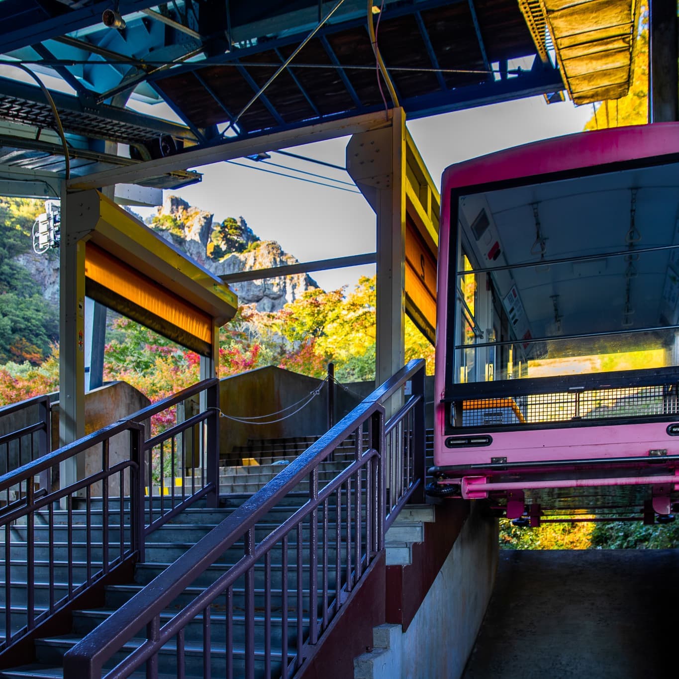 日本三大渓谷美のひとつと称えられる、小豆島の「寒霞渓(かんかけい)」。1934年に、香川から広島にかけての瀬戸内の美観を守るため、霧島や雲仙とともに日本最初の国立公園に指定された「瀬戸内海国立公園」を代表する景勝地です。ロープウェイと登山道という2つのルートで、その自然美を心ゆくまで堪能してきました。11月上旬から下旬にかけては、紅葉の見頃。ロープウェイから見下ろす景色は、華やかな絨毯のように美しい