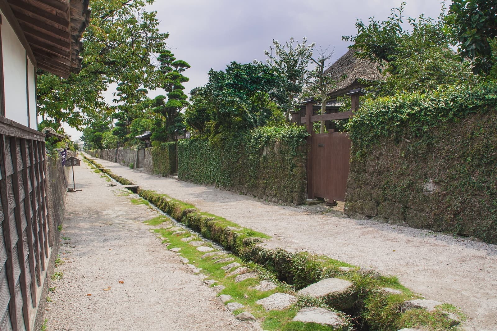 江戸時代中期に整備されたと伝わる。御仮屋と呼ばれる行政庁を中心に道路割をなし,防衛を兼ねた城塁型の区画となっている。また,戸ごとに築かれ庭園は主屋とよく調和し,通りに面した石垣の上に大刈込の生垣が続き,地域全体が自然をよく取り入れた庭園都市的な造りとなっている。