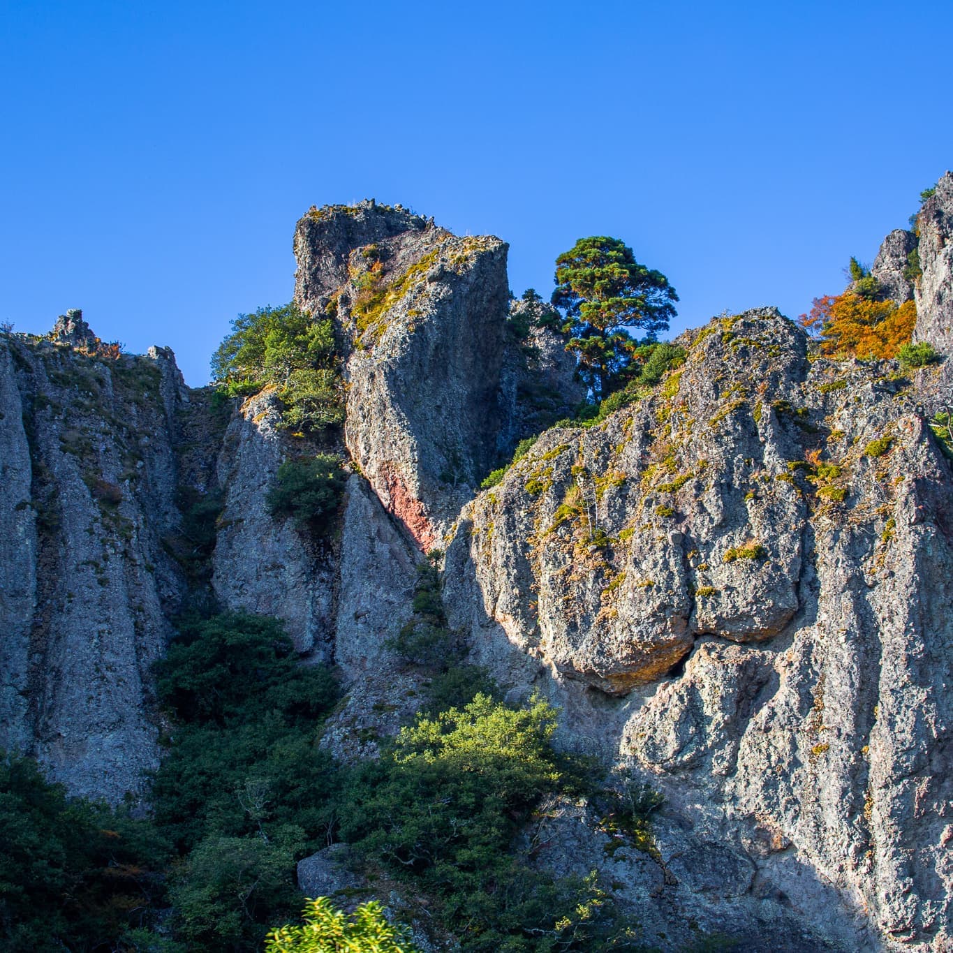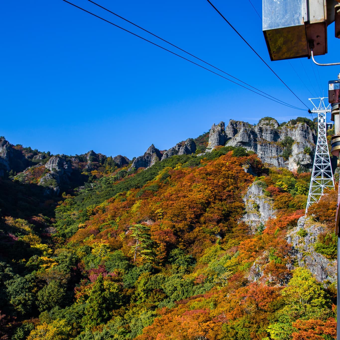 日本三大渓谷美のひとつと称えられる、小豆島の「寒霞渓(かんかけい)」。1934年に、香川から広島にかけての瀬戸内の美観を守るため、霧島や雲仙とともに日本最初の国立公園に指定された「瀬戸内海国立公園」を代表する景勝地です。ロープウェイと登山道という2つのルートで、その自然美を心ゆくまで堪能してきました。11月上旬から下旬にかけては、紅葉の見頃。ロープウェイから見下ろす景色は、華やかな絨毯のように美しい